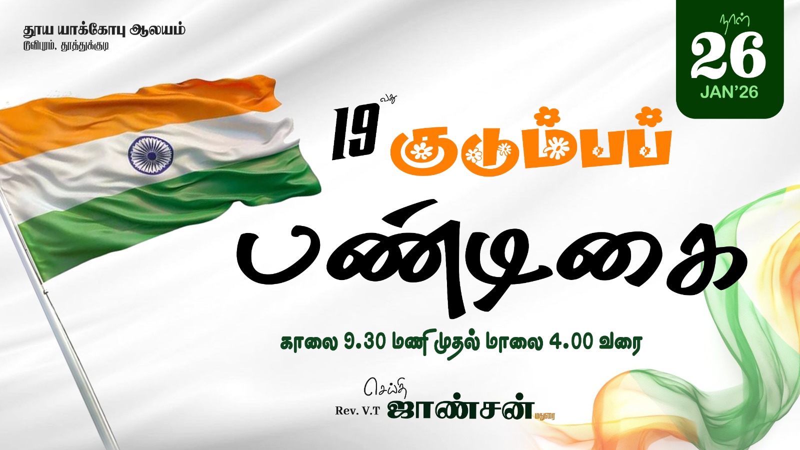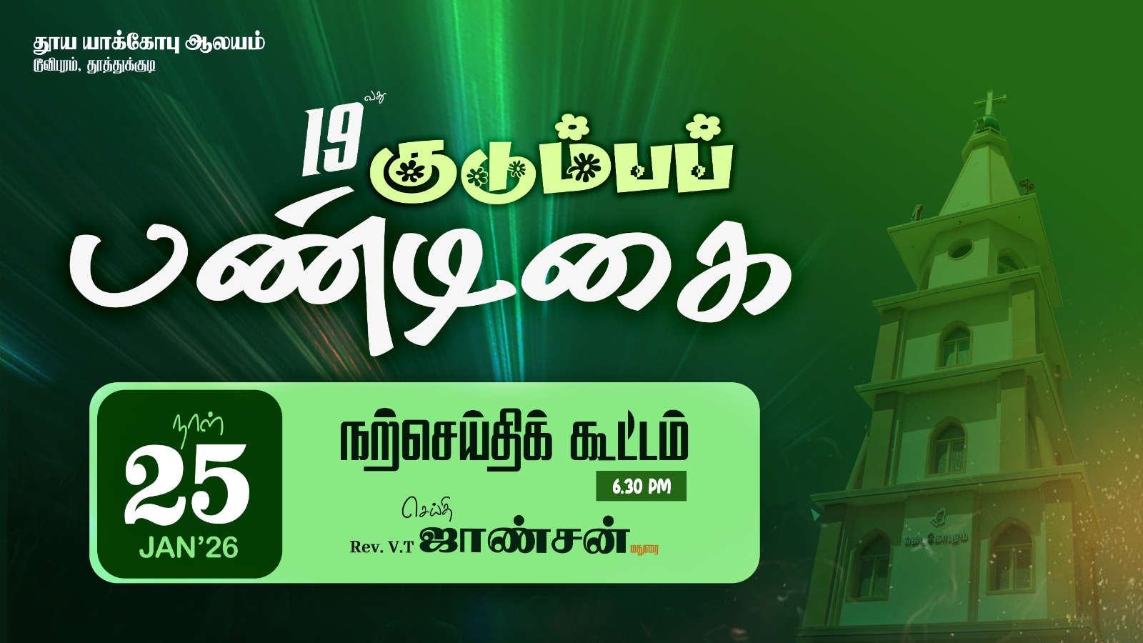 St James Church 34A, Tooveypuram second street, Thoothukudi, Thoothukudi🔴நேரலை: 19வது குடும்ப பண்டிகையை, தூய யாக்கோபு ஆலயம், டூவிபுரம், தூத்துக்குடி, 🔹 ஜனவரி 26 (திங்கட்கிழமை) 2026 @ காலை 9.30 மணி முதல் மாலை 4 மணி வரை 🎙️ செய்தி : Rev. V.T. ஜான்சன், மதுரை This is the official YouTube channel of St. James Church, Thoothukudi. 📡 CSI Holy Communion Service is live streamed for the faithful across the world. […]